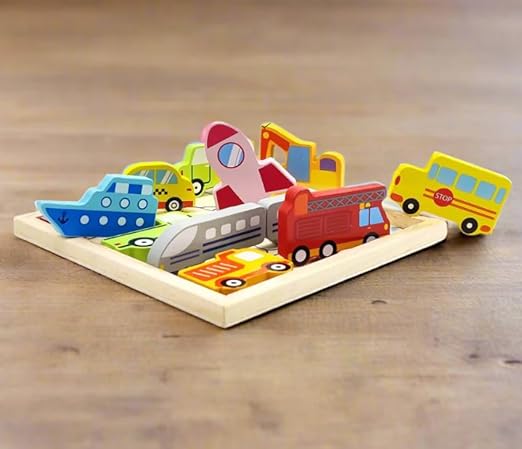 Montessori Wooden Puzzle Trays, Educational Playset (Vehicle)
